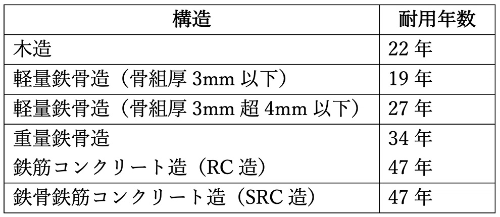 主に建物の構造によって数値が変わってきます。税務上、その建物の価値を何年かけて経費として計上するかを定めた期間のことです。